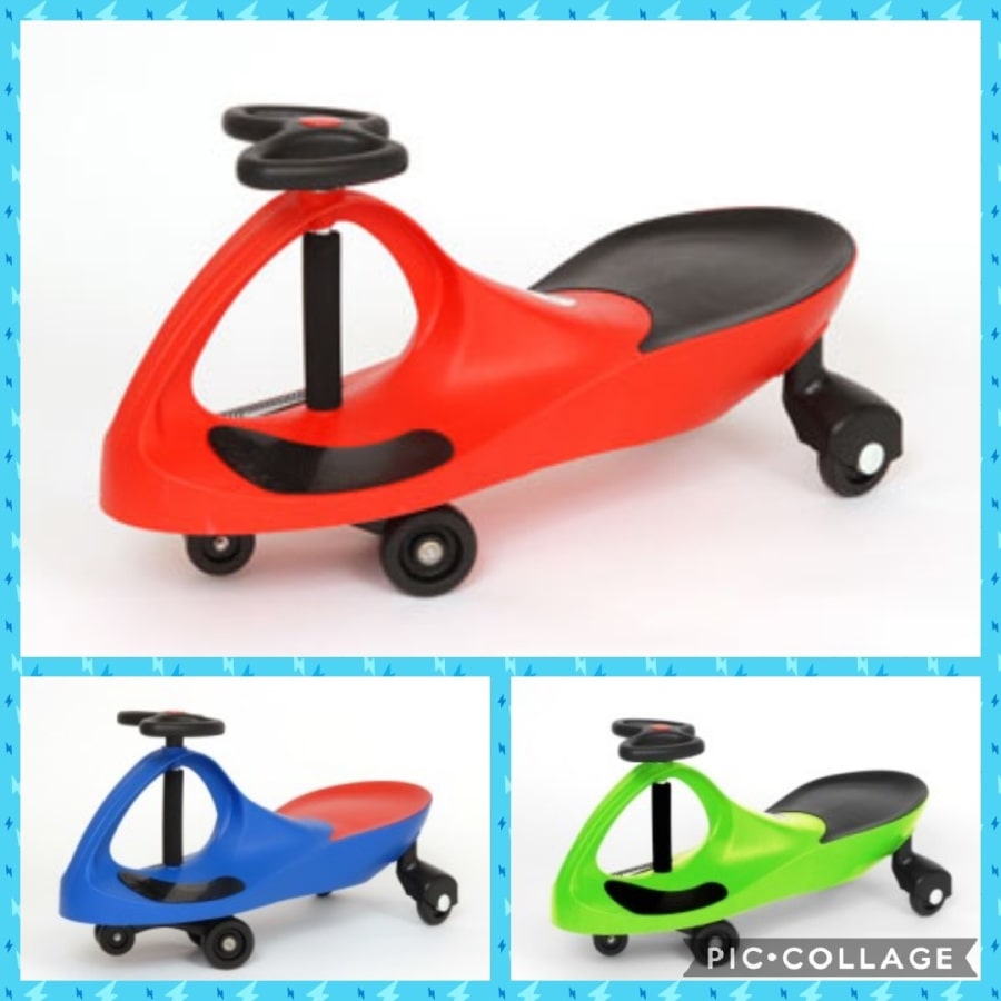children lift there feet onto the footrests then move the steering wheel left to right to race.